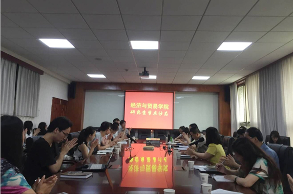 6月6日,经济与贸易学院举办研究生学术沙龙。经贸学院院长柳思维、常务副院长彭炳忠、副院长刘乐山、罗双临、陆杉,副书记颜建军、旅游管理学院副院长何天祥,财政金融学院副院长曹秋菊,部分硕士生导师,经贸学院全体研究生参加沙龙。此次沙龙由陆杉主持。