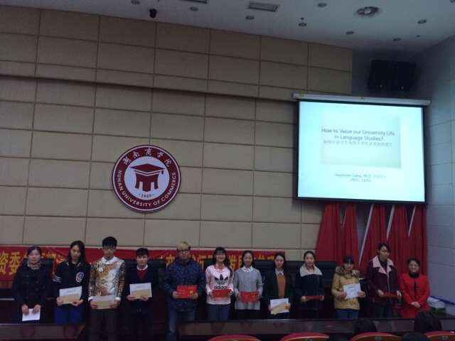 11月12日晚,加拿大归国博士、湖南中加国际学校校长梁晓在北院图书馆多功能报告厅为我院同学作题为 “如何让语言专业的大学四年更有价值”(How to Value Our University Life in Language Studies)讲座。