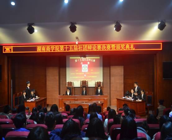 12月12日晚七点,我校第十五届社团辩论赛决赛暨颁奖典礼在三教模拟法庭火热举行。本次比赛由大学生法苑协会,大学生社会科学联合会,大学生演讲与口才协会,卡耐基文化协会共同承办。法学院党总支部副书记刘期湘,法学院办公室主任杨凯,法学院债权法老师谭庆康等担任本场的评委。历时一个月的紧张激烈角逐后,大学生物流协会代表队与大学生演讲与口才协会从四十支参赛队中脱颖而出,进入决赛。