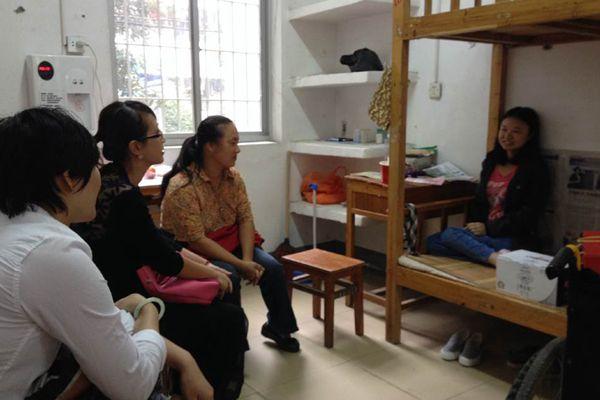 9月17日,校团委副书记曾晶老师、校团委何菂老师、经贸学院学生办老师一行来到萃雅公寓,亲切地看望了经贸学院商务1402班的残疾新生陈望同学。