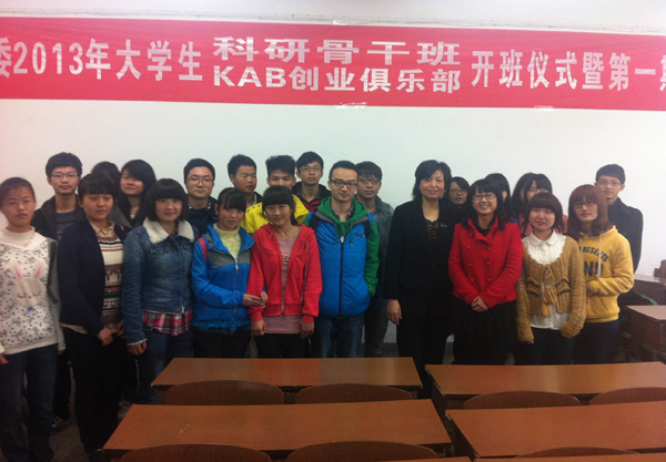 4月23日下午,校团委2013年大学生科研骨干班、KAB创业俱乐部开班仪式暨第一期培训活动在D207教室拉开帷幕。
