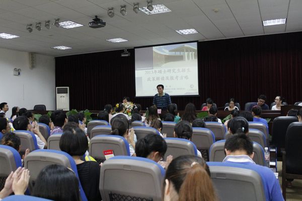 讲座伊始,林洪教授介绍了当前考录比为3:1的较热考研形式,随后,林教授为同学们详细解读了《2013年研究生招生简章》,林洪教授还结合个人体会为同学们分析考研报考方略,他提醒同学们要依照自己的兴趣和理想进行定位、根据个人能力选择学校和专业,做到有的放矢、一击即中。