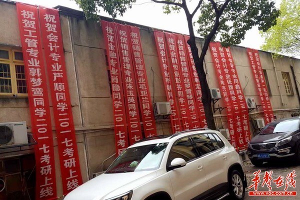 学院特意挂出彩幅,希望能激励更多学生。