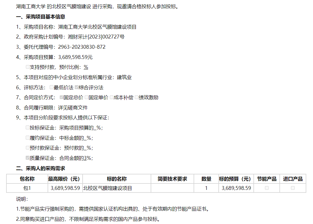 金沙js93252北校区气膜馆建设项目竞争性磋商邀请公告
