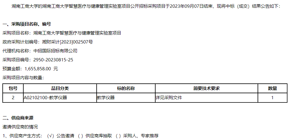 金沙js93252智慧医疗与健康管理实验室中标(成交)公告