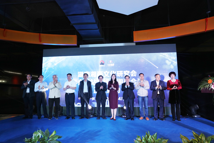 湖南湘商文化研究会会长郑佳明向来宾简要介绍了 “湘商会讲”论坛、学会网站以及即将成立的湘商研究院的相关情况,随后举行了湖南湘商文化研究会网站上线、湘商会讲启动仪式。