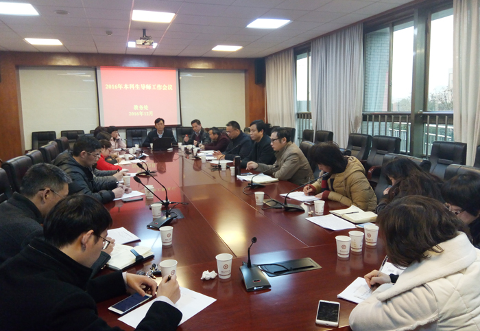 12月29日下午,2016年本科生导师工作会议在二办公楼401召开。副校长刘国权、教务处、学工处、教学评估中心等部门负责人,各二级学院教学副院长和部分导师代表参加了此次会议。会议由教务处处长胡春华主持。