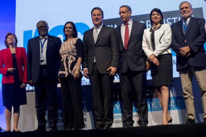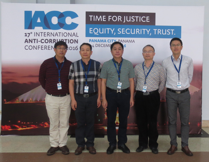 应第17届国际反腐败大会组委会的邀请,我校廉政建设协同创新中心首席专家王明高教授、副主任谭志君教授、特邀研究员郑军武、王习加和办公室主任陈鑫铭博士,于2016年12月1日至4日出席在巴拿马首都举行的第17届国际反腐败大会。本次大会的主题为“正义、公平、安全和信任的时代”, 巴拿马总统Juan Carlos Varela与副总统Isabel Saint Malo莅临开、闭幕式并致辞,出席会议的还有:国际反腐败大会组委会主席Akere Muna、透明国际主席Jose Ugaz和透明国际创始人Peter Eigen、国际反腐败大会组委会副主席Huguette Labelle等领导和嘉宾,共有156个国家和地区的1600名政府官员、专家学者和机构代表出席大会。