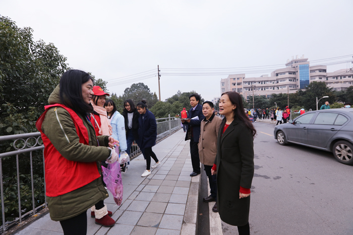 途中,陈校长偶遇正在拾捡垃圾的青年志愿者协会的“红帽子”,并和她们愉快交谈。她说:“校园环境的每一个细微变化,都体现了大家爱校如家意识的提升,希望大家形成爱护公共环境卫生的共识,并形成一种习惯,从自身做起,共同建设一个环境洁净优美的校园。”陈校长还对学校的园林绿化工作表示充分肯定。