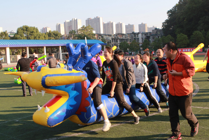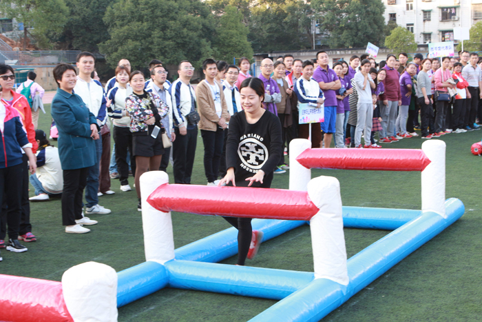 深秋红叶美炫目,趣味运动乐开怀,11月4日下午,我校以“为三升,强体质;为梦想,铸华章”为主题的第十九届田径运动会拉开序幕。开幕式后,一场别开生面的教职工趣味运动会在田径场中央开始,25个分工会,近600名教职工参加比赛。运动会以集体比赛为主,分别是铁甲战车、龙行天下和趣味闯关三个项目。