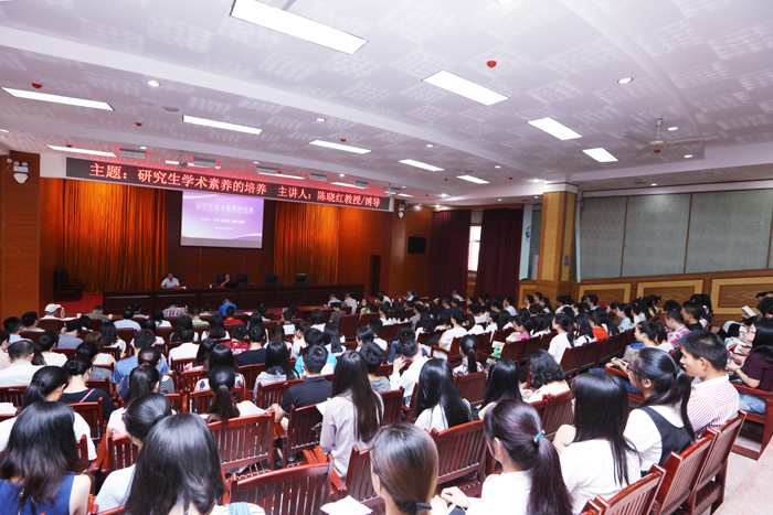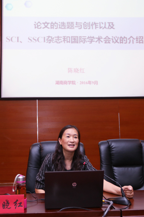 9月27日下午,陈晓红校长在图书馆报告厅为我校研究生作主题为“研究生论文选题创作以及SCI、SSCI杂志和国际学术会议”的学术讲座。各培养单位分管研究生工作的副院长,研究生干事、研究生班主任,研究生省级学科竞赛获奖指导老师,相关学院负责人和全体研究生参加了此次学术讲座,讲座由研究生院院长周鲜成主持。