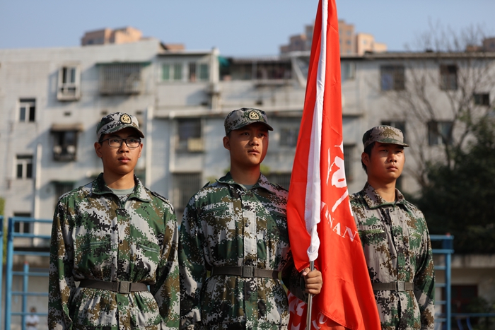 在经历了严格的军训之后,同学们早已蓄势待发,一个个精神饱满,目光坚定而自信。阅兵式上,校长陈晓红在部队领导及学生处负责人的陪同下检阅了英姿飒爽的参训方队。