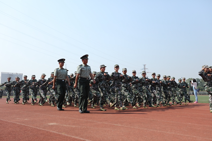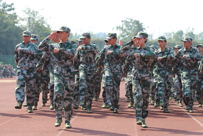 承训部队领导在讲话中充分肯定了同学们在军训中养成的坚韧不拔、吃苦耐劳的精神,并希望把这种精神带到学习生活中去,不畏困难,为梦想执着前进。
