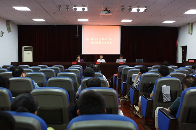 7月8日下午,学校在二办301报告厅召开学习习近平总书记“七一”重要讲话暨“两学一做”党群工作会议。校党委书记唐亚阳、党委副书记夏继春、纪委书记陈丽影出席会议。学校党群部门负责人,各党总支书记、直属党支部书记参加会议。会议由夏继春副书记主持。
