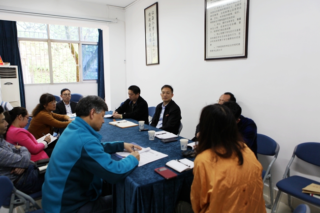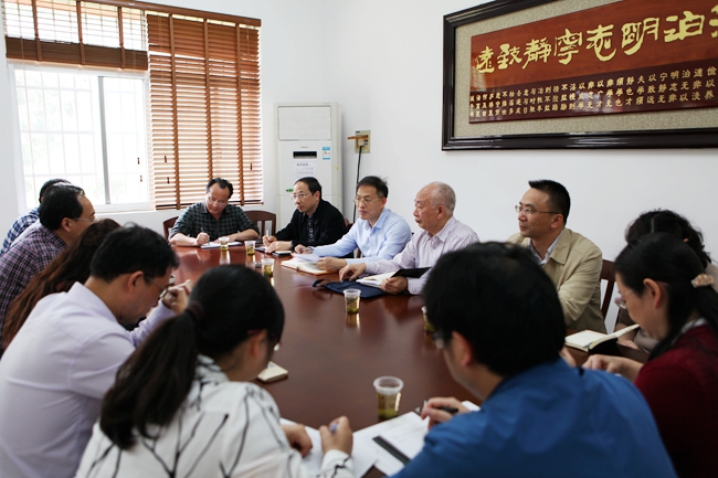 各二级学院在学科、专业、办学历史、目标定位等方面各不相同。调研中,唐亚阳书记认真听取了相关工作汇报,并就各自的情况做出了分析和指导。他提出,学院发展的定位思路要清晰,应与学校发展相吻合,以目标定位、战略定位引领发展;要积极走出去争取资源,同时增强自身造血功能,综合利用、多渠道利用有限的资源,把钱用在最需要的地方。在国家建设“双一流”的高校发展战略背景下,具有实力的优势学科要树立长远目标,成为带动学校学科建设的示范者和领头羊,在某些点上做出特色,做到人无我有、人无我优、人无我特。一些办学历史较长的学院还应在文化建设与传承、校友工作上做出特色,带动和促进整个校园文化建设。
