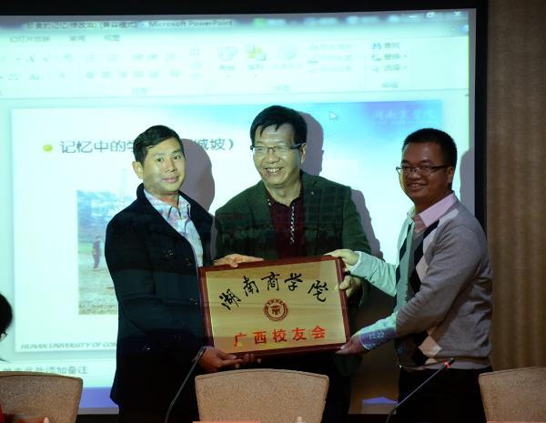 广西校友会会筹备组成员韦智校友介绍了广西校友会筹备工作情况。大会审议通过了《湖南商学院广西校友会章程》、《湖南商学院广西校友会财务管理制度》。选举产生了以广西锐和文化传媒有限公司董事兼副总经理赵先辉校友为会长的广西校友会第一届理事会。