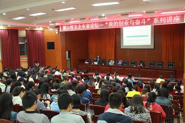 湖南省第七元素文化传播有限公司董事长、瑞华会计事务所高级合伙人陈谦校友用真挚朴实的语言讲述了自己的创业之路。他认为,创业的人很多,而创业成功的人却屈指可数,所以创业一定要发现自己的优势,找到适合自己的平台,发展一个好的朋友圈,然后用勤奋和努力不断向目标靠近。陈谦校友还和同学们谈了几点自己的创业体会,并和同学们分享了他成功的秘诀——“先做人,后做事”。最后,陈谦董事长声情并茂地朗诵了一首自己根据海子的《以梦为马》改编的诗来结束了自己的演讲。