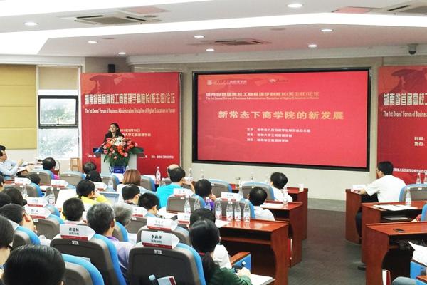为适应经济社会发展新要求,探索和构建新常态下湖南省高校工商管理学科新的发展模式和发展道路,9月19日上午,由湖南省教育厅主办,湖南大学承办的湖南省首届高校工商管理学科院长(系主任)论坛在湖南大学举行。省教育厅厅长王柯敏教授出席会议并致辞,我校校长陈晓红教授参加会议并与香港中文大学副校长许敬文教授、中山大学管理学院执行院长李仲飞教授、湖南大学工商管理学院院长马超群教授等四人作会议主题报告。