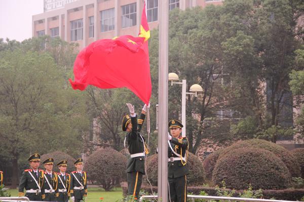 清晨6时50分,升旗仪式开始。校国旗班同学迈着矫健的步伐走向升旗台,伴随着国歌声,国旗缓缓升起,师生行注目礼,气氛庄严肃穆。