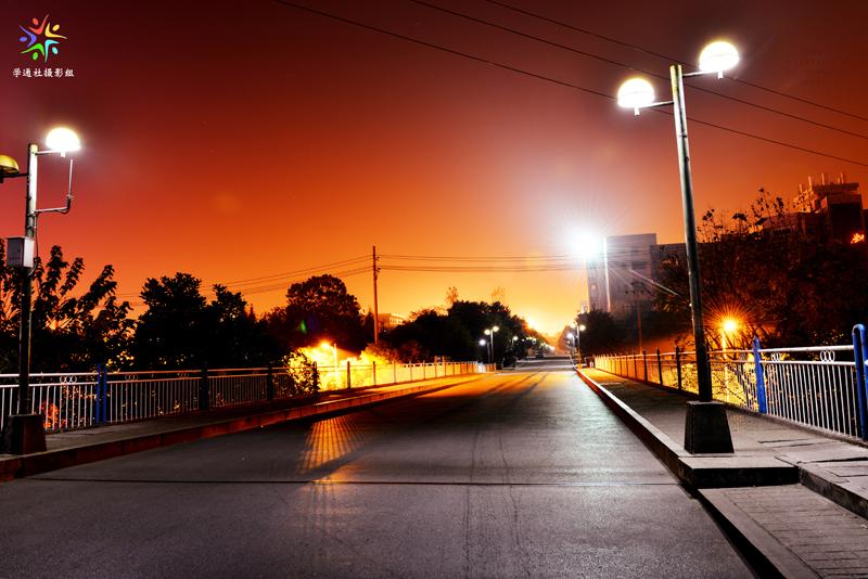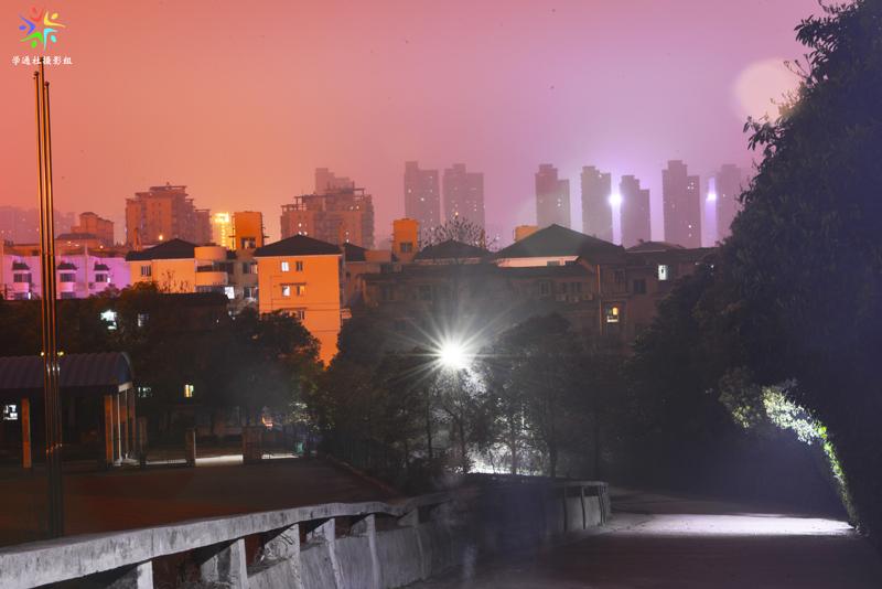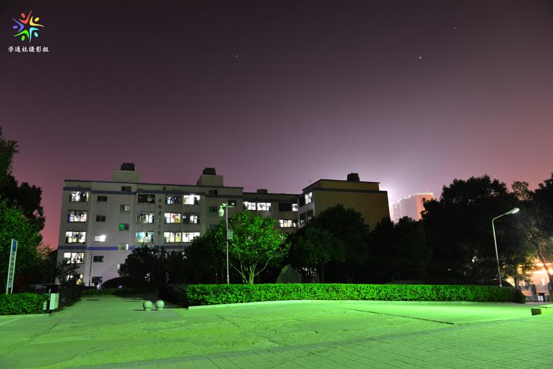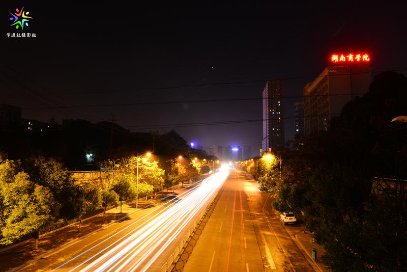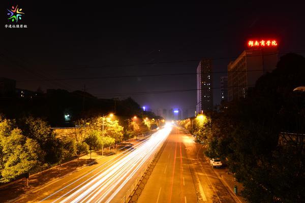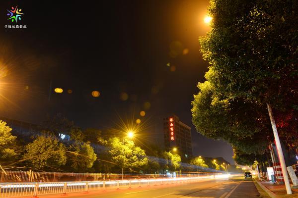 夜空似藏青色的帷幕,点缀着闪闪“繁星”,阑珊灯火流转,倾泻了万里朦胧,迷醉了夜的幻境。湿润空气氤氲着操场上奔跑的身影,沁人的花香弥漫着整个天际,楚枫桥下车灯划出的细长光影,洋溢着归家的静谧。而此刻的我们,正拥抱着夜幕下商院的美丽。