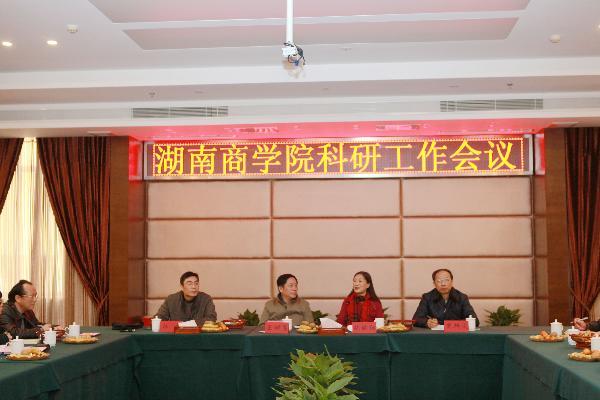 科研处处长周鲜成教授在会上就2014年科研工作进行了总结。 2014年我校在科学研究和学科建设六个方面取得显著成效,尤其是科研平台建设和服务地方经济社会发展更是取得可喜成绩和突破:学校首次获得湖南省廉政建设“2011协同创新中心”;柳思维教授撰写的调研报告获得国务院总理李克强的重要批示。会议还提出2015年学校科研和学科建设工作重点,即进一步做好2015国家项目的申报工作,广泛宣传发动,认真做好项目团队的组建,加强项目申报书的撰写和打磨。