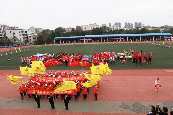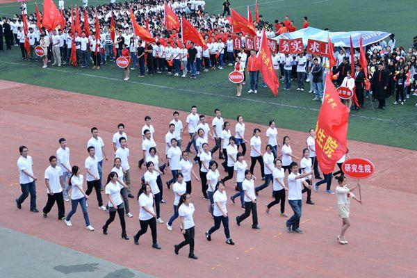 11月2日上午,田径场上彩旗飘扬,掌声雷动,运动会隆重开幕。校领导陈晓红、夏继春、彭进清、杨虹、陈丽影、曾伏秋、聂国卿、李泽华、廖明星和各二级学院及相关职能部门负责人出席开幕式。开幕式由副校长杨虹主持。