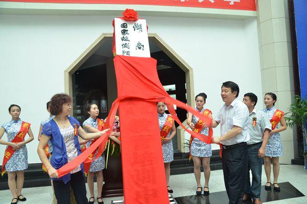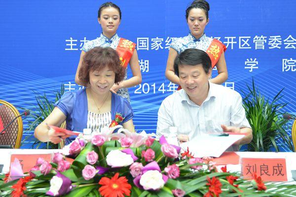 杨虹副校长在仪式上致辞,并代表学校与国家级浏阳经开区管委会副主任刘良成签订《战略合作协议》。随后,两人共同为“湖南商学院  国家级浏阳经济技术开发区教育培训中心”揭牌。