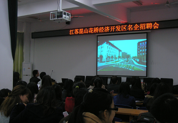4月10日上午,由招生就业指导处和江苏省昆山花桥经济开发区组织人事局联合举办的&“江苏昆山花桥名企高校行&”2013年专场招聘会在校实验楼招聘会场举行。