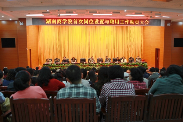 10月16日下午,我校首次岗位设置与聘用工作动员大会在图书馆多功能报告厅召开。校领导欧阳峣、唐未兵、夏继春、彭进清、杨虹、王明高、曾伏秋、陈丽影、聂国卿、刘国权、廖明星出席大会,全校教授、博士、副科级以上干部、各级人大代表、政协委员、民主党派负责人及离退休人员代表参加了会议。会议由校党委副书记夏继春主持。