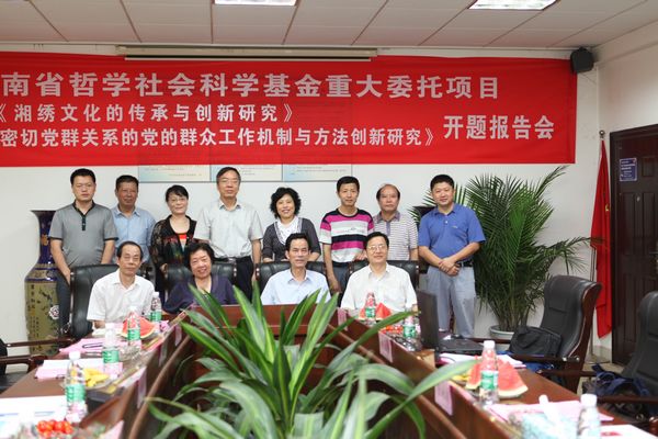 7月21日上午,由李立芳教授主持的省社科基金重大委托项目《湘绣文化的传承与创新研究》、龙兴海教授主持的省社科基金重大委托项目《新形势下密切党群关系的党的群众工作机制与方法创新研究》开题报告会在二办公楼702会议室举行。省委宣传部巡视员李湘舟、湖南商学院校长唐未兵出席会议,会议由省社科规划办主任骆辉主持。