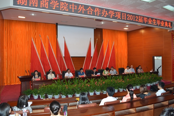 6月17日上午,我校中外合作办学项目2012届毕业典礼在校多功能报告厅举行。副校长杨虹、曾伏秋,校学生处、教务处、国际教育学院等部门负责人,外教、国教院师生300多人参加了典礼。典礼由国际教育学院党总支书记吴明育主持。
