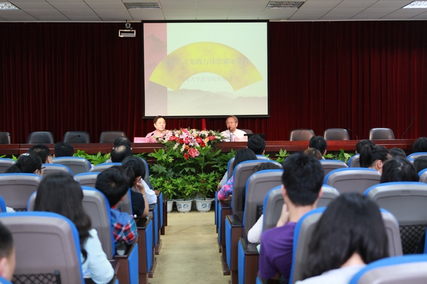 杜钢建教授用&“金风玉露一相逢,便胜却人间无数&”作为开场表达了自己对中国人权与宪政建设的愿景,并从&“十七大报告&”中所提出的&“四大民主&”和&“四大政治权利&”中引出,人民当家作主是社会主义民主政治的本质和核心。紧接着杜建刚教授向大家简介了中国古代宪法的概念和特征,并强调了中国古代宪法的&“统邦国&”&“治朝政&”&“彰善恶&”和&“直法律&”的作用,同时通过&“吴人移民&”&“韩终前往朝鲜&”&“徐福子孙&”等例子,向大家介绍了历史上湖南的法治文明传入日韩等国,影响日韩宪法制度的事实。最后,他从&“什么是宪政&”&“为什么要推行宪政&”&“宪政改革政治意义&”等三个方面讲述了我国宪政规制改革的必要性。(张雷洋 陈娟)