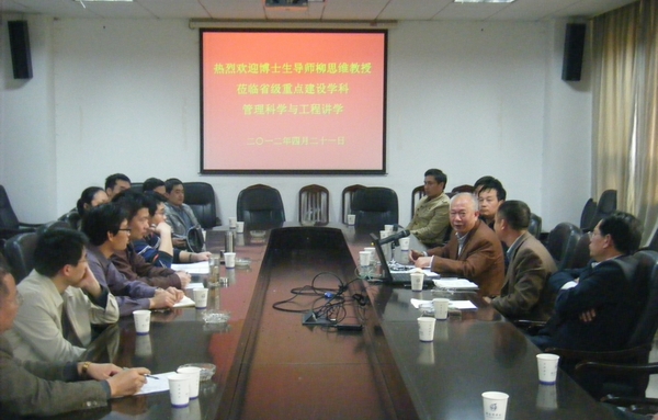会上,柳思维教授作了一场生动的学科建设专题讲座。柳教授阐述了我校省级重点建设学科的三个阶段,他从强化学科责任意识、努力凝练学科特色、加大科研创新、强化学科队伍建设、扩大学术交流、健全组织管理等六个方面对&“管理科学与工程&”重点建设学科提出了建设性的意见和建议。